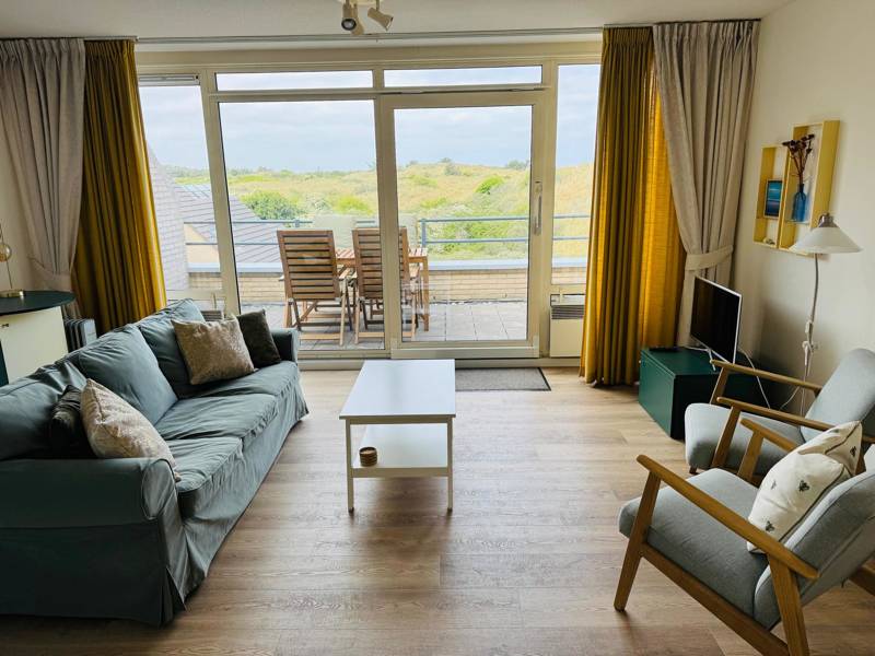 Ruim, comfortabel en gezellig 5 sterren appartement in de vorm van een maisonette met middag- en avondzon op het balkon. Geschikt voor maximaal 4 personen. De voordeur is op de eerste verdieping van het complex, welke bereikbaar is via een wenteltrap. Het appartement beschikt over gratis draadloos internet (WiFi) via een wachtwoord. Bij weekverhuur in het hoogseizoen zijn de wisseldagen op zaterdag.